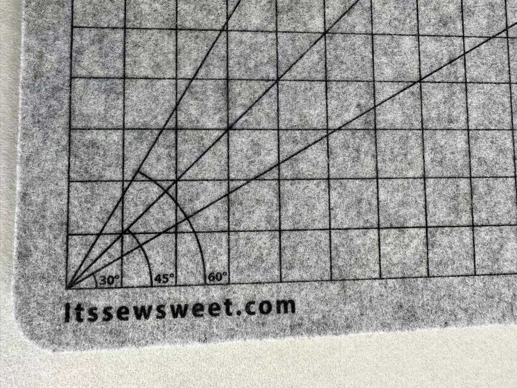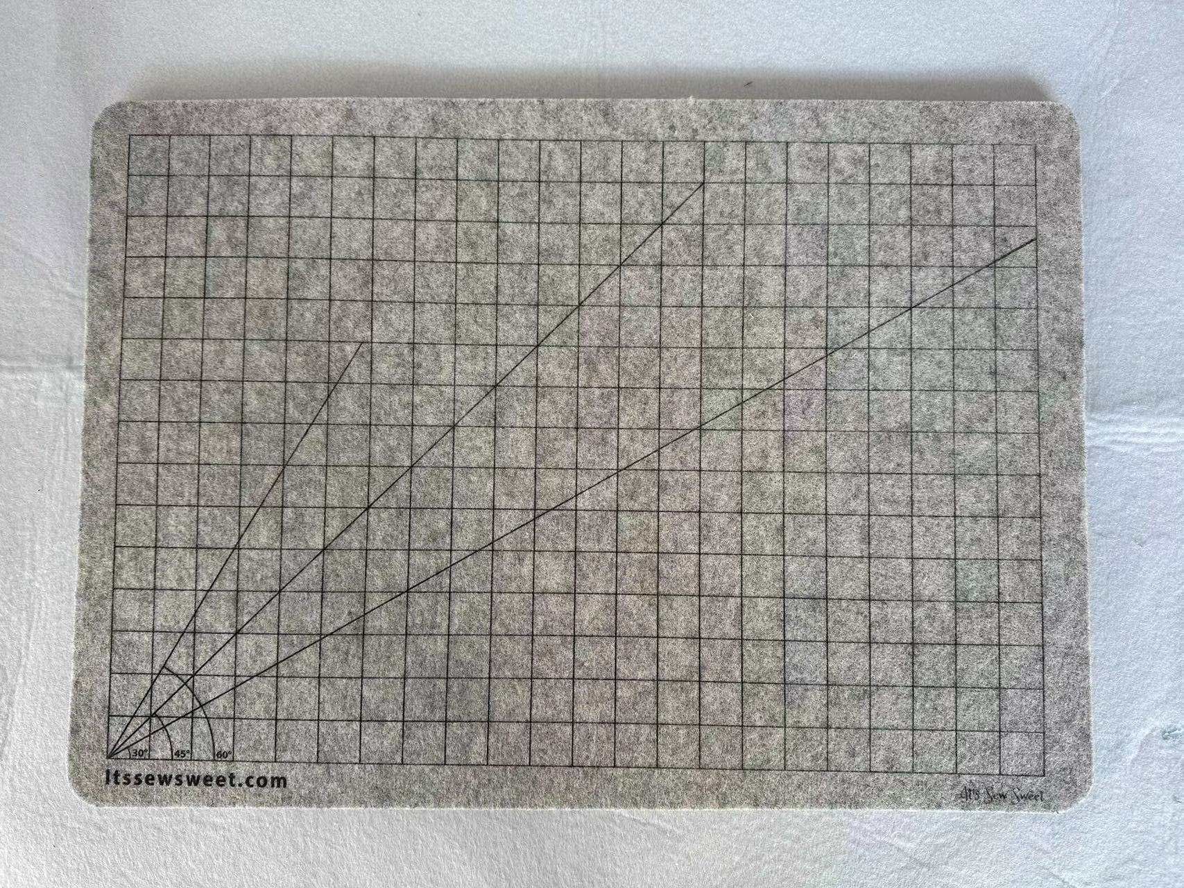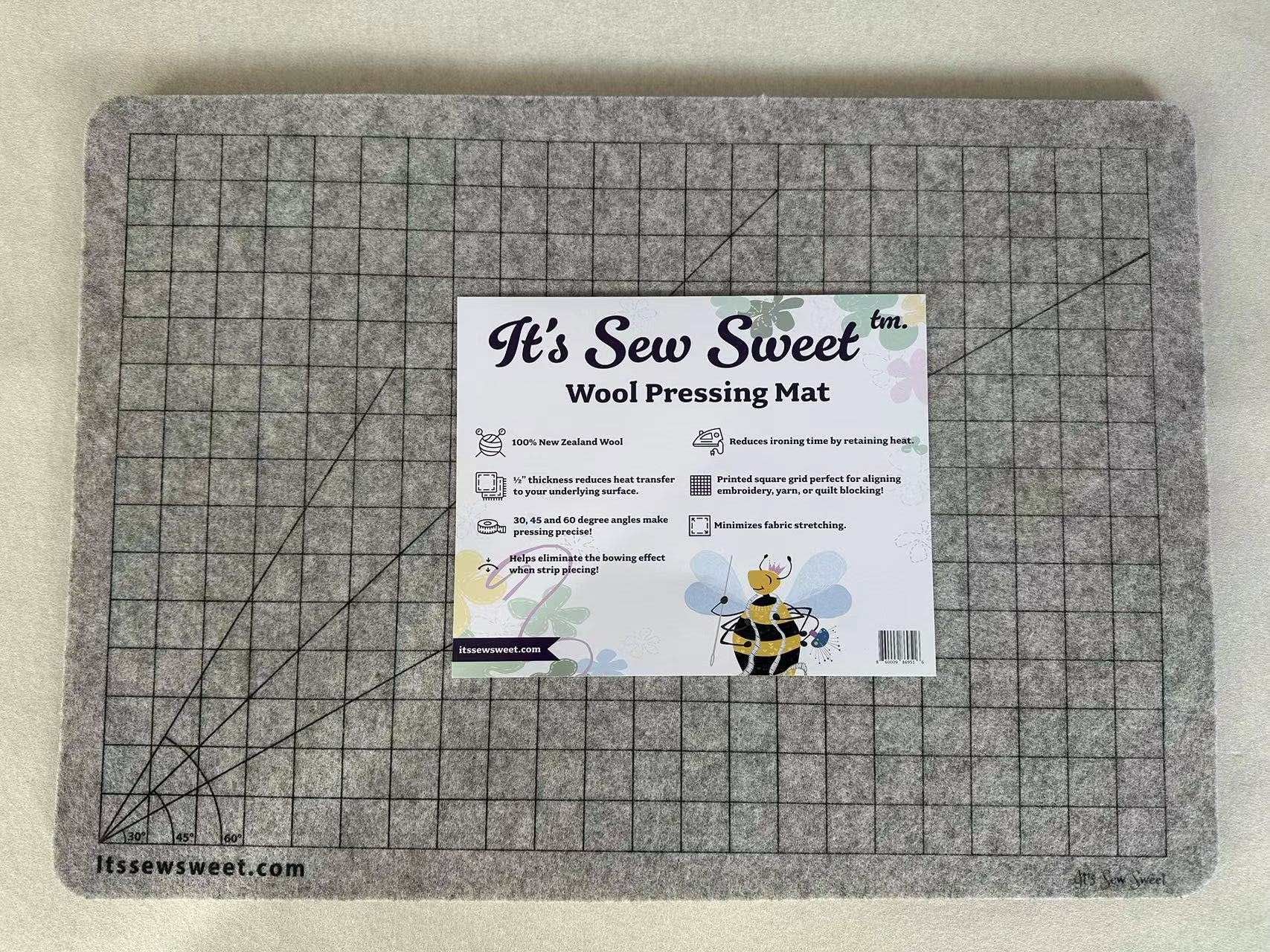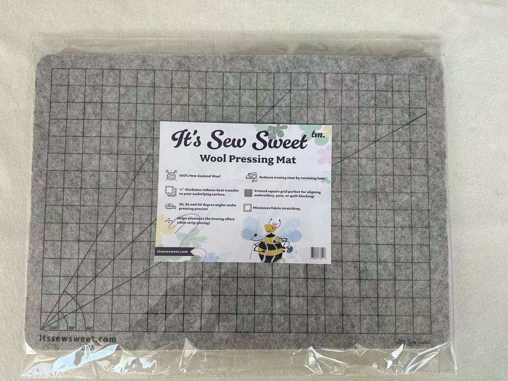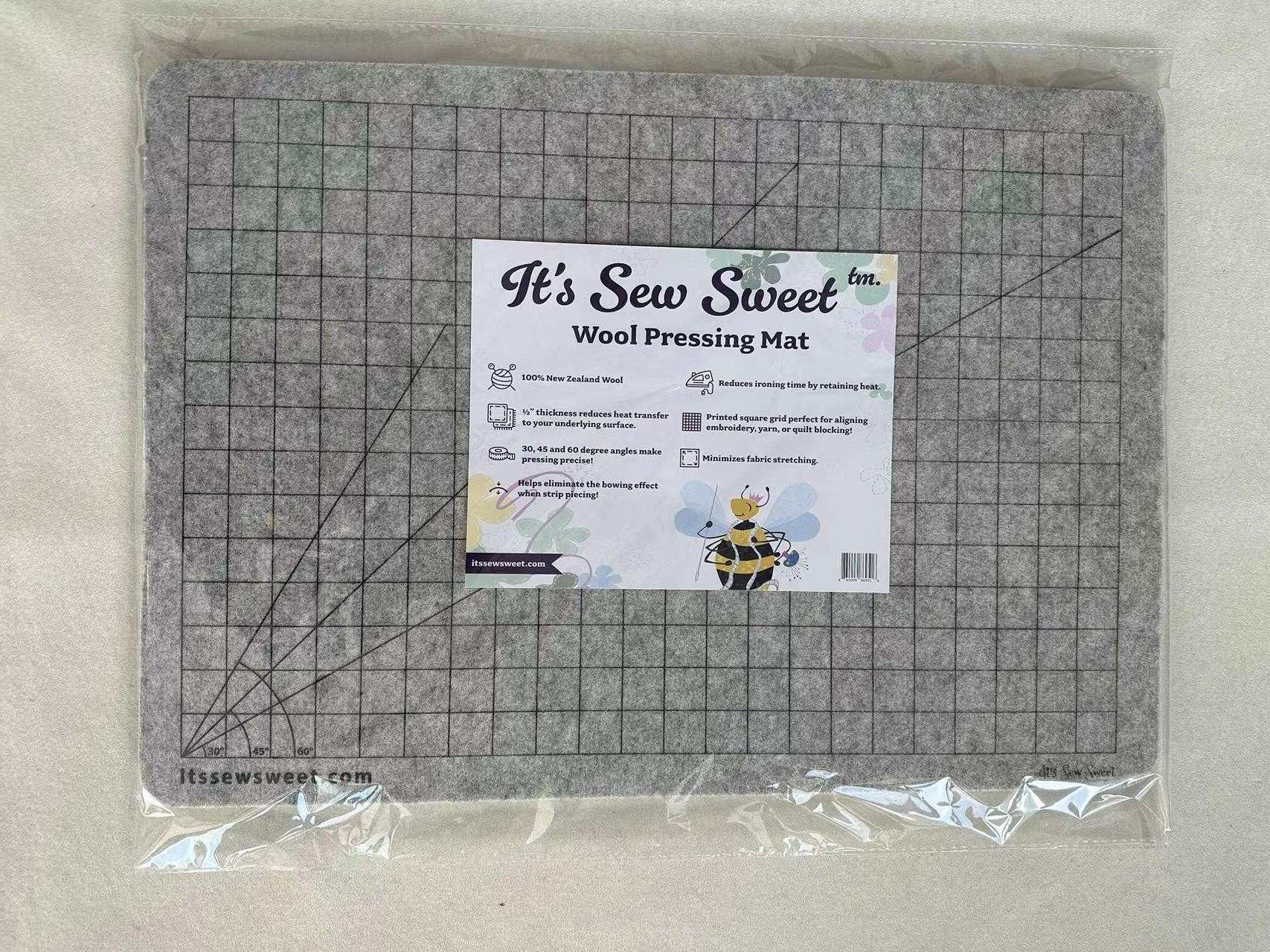 Our 100% premium wool pressing mats are now also available at 17"x24", 1/2" thick and are marked with 30, 45, and 60 degree angles. These mats are designed with embroidery, yarn, or quilt blocking in mind. Using wool as a pressing surface minimizes fabric stretching and helps eliminate the bowing effect when strip piecing, and the grid and angle lines help make your pressing precise.